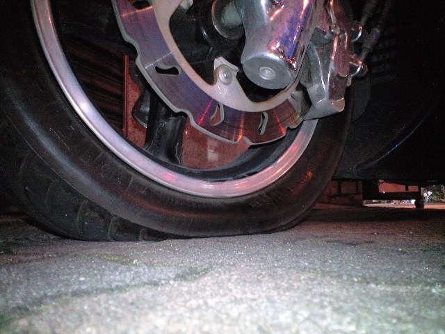 前輪を確認すると、見事なパンク。