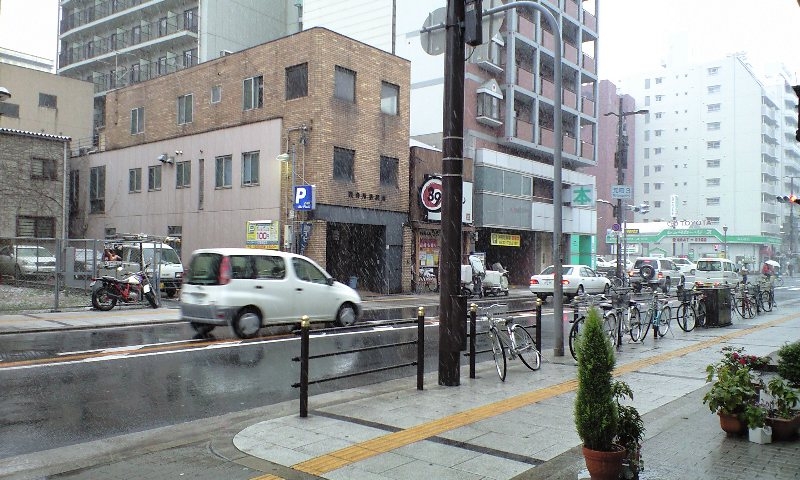 通勤途中、確か梅田に差し掛かった辺りから雪が降り始めた。